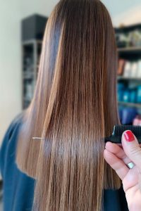 Aplicamos tintes a mano alzada, mechón a mechón, sin seguir un patrón lineal ni empezar desde la raíz, logrando un efecto de coloración natural y suave, con transiciones graduales entre tonos claros y oscuros.